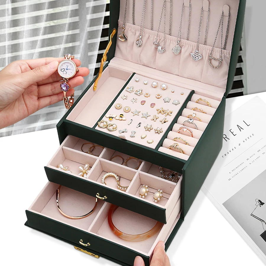 1.Exquisite design, locking arch three-layer jewelry box using high-quality materials and unique design concepts, to create a beautiful appearance, both practical and artistic.